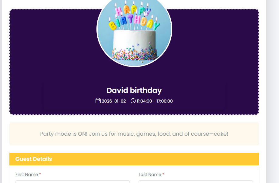 When the guest opens the invite link, event details are displayed.